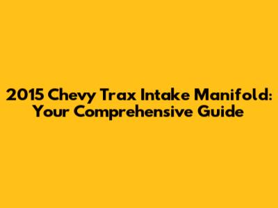 2015 Chevy Trax Intake Manifold: Guide & Repair Tips