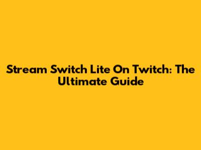 Stream Switch Lite On Twitch: The Ultimate Guide