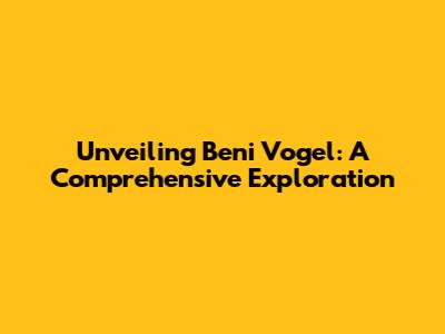 Unveiling Beni Vogel: A Comprehensive Exploration