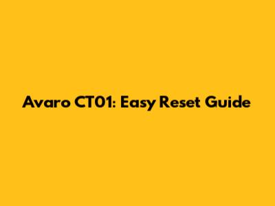 Avaro CT01: Easy Reset Guide