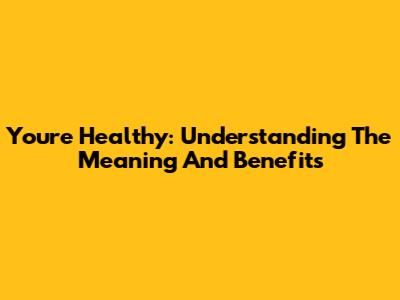 You're Healthy: Understanding The Meaning And Benefits