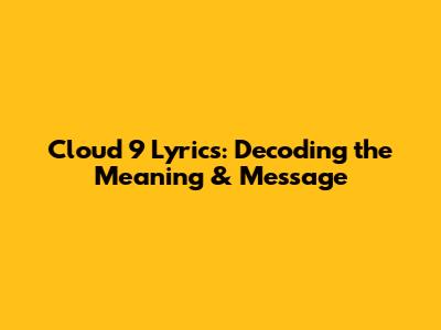 Hey everyone, let's dive headfirst into the lyrics of Cloud 9. This track has been making waves, and for good reason! It's got that infectious beat, but more importantly, it's got a message. This article will break down the meaning of the lyrics, explore the themes, and give you the full scoop so you can appreciate the song on a deeper level. We'll be looking at what makes the lyrics so special, and how it really connects with listeners. Ready to get started? Let's go!