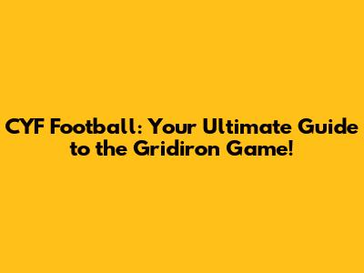 Alright, folks, let's get pumped about game day! There's nothing like the excitement and energy of a live CYF Football game, whether you're at the stadium or watching from home.