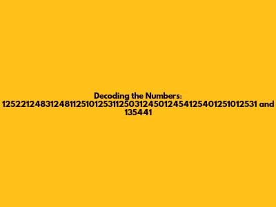 Hey guys! Ever stumble upon a string of seemingly random numbers and wonder what they mean? Well, today we're diving into just that! We're going to try and decode the mystery behind these two sets of numbers: 1252212483124811251012531125031245012454125401251012531 and 135441. Buckle up, because it might be a wild ride!