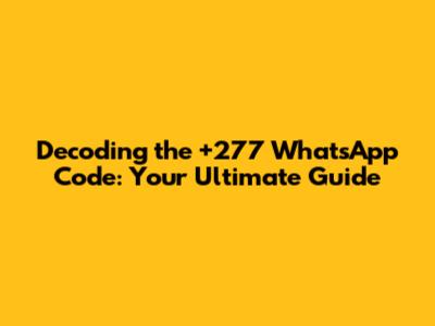 Decoding The +277 WhatsApp Code: Your Ultimate Guide