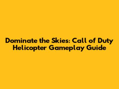 Advanced Strategies and Tactics for Call of Duty Helicopter Gameplay