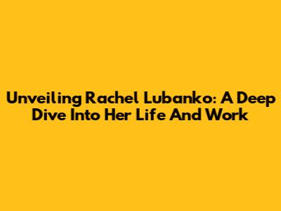 Unveiling Rachel Lubanko: A Deep Dive Into Her Life And Work