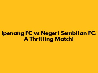 Get ready, football fans! Today, we're diving deep into the exciting clash between Ipenang FC and Negeri Sembilan FC. This match promises to be a nail-biter, filled with intense action, strategic plays, and unforgettable moments. Whether you're a die-hard supporter of either team or just a casual observer of the beautiful game, this is one face-off you won't want to miss. So, let’s break down everything you need to know about this epic showdown.