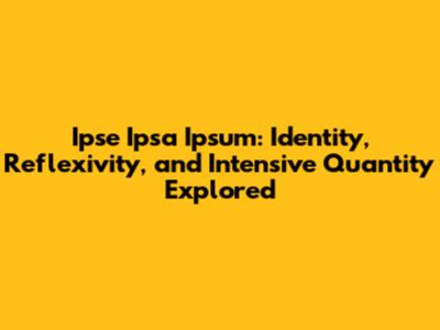 Ipse Ipsa Ipsum: Identity, Reflexivity, And Quantity Explored