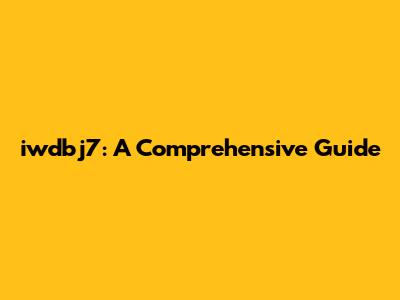Decoding iwdbj7: A Practical Approach