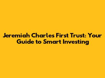 Jeremiah Charles First Trust: Your Guide To Smart Investing