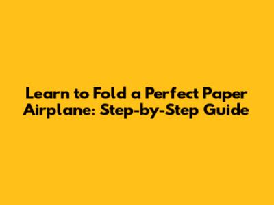 Learn To Fold A Perfect Paper Airplane: Step-by-Step Guide