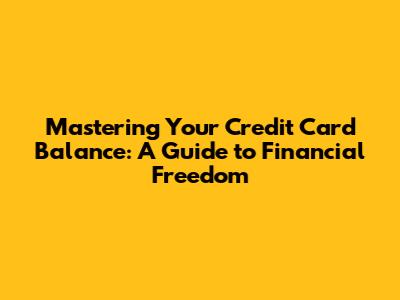 Mastering Your Credit Card Balance: A Guide To Financial Freedom