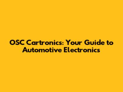 OSC Cartronics: Your Guide To Automotive Electronics