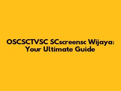 OSCSCTVSC SCscreensc Wijaya: A Comprehensive Guide