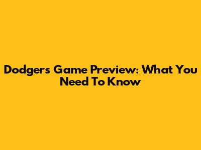 Dodgers Game Preview: What You Need To Know