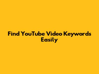 Find YouTube Video Keywords Easily