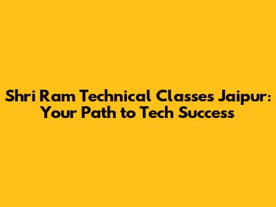 Shri Ram Technical Classes Jaipur: Your Path To Tech Success