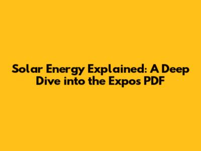 Solar Energy Explained: A Deep Dive Into The Expos PDF