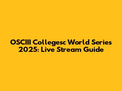 OSCIII Collegesc World Series 2025: Live Stream Guide