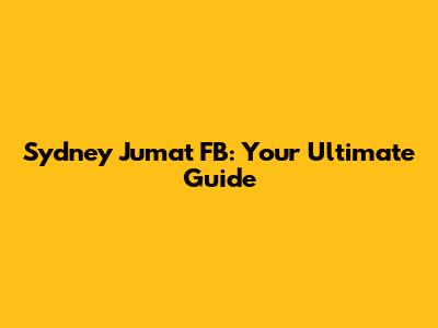 Sydney Jumat FB: Your Ultimate Guide