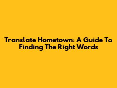 Translate Hometown: A Guide To Finding The Right Words