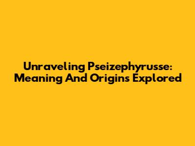 Unraveling Pseizephyrusse: Meaning And Origins Explored