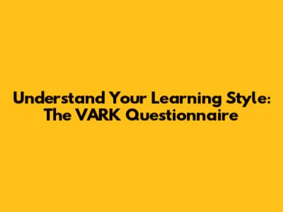 Understand Your Learning Style: The VARK Questionnaire