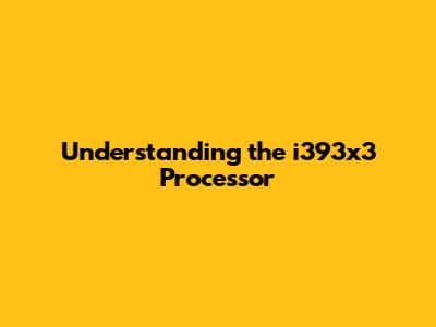 Understanding The I393x3 Processor
