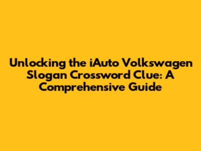Hey crossword enthusiasts! Ever found yourself scratching your head over the iAuto Volkswagen slogan crossword clue? You're not alone! It's a common stumbling block, but fear not, because we're diving deep into this puzzle to help you crack the code. This guide is designed to equip you with the knowledge to conquer this clue and expand your overall crossword-solving prowess. We will explore the possible answers, the context, and some helpful tips to navigate similar clues in the future. So, buckle up, and let's unravel this intriguing puzzle together! Finding the right answer to a crossword clue can be as satisfying as finishing a complex project. It's a mental workout that sharpens your vocabulary and general knowledge. The iAuto Volkswagen slogan clue is an excellent example of a clue that challenges you to think about marketing, branding, and automotive history all at once. By understanding how these clues are structured, you'll be better prepared to tackle any crossword challenge. Let’s start with a basic understanding of what makes a good crossword clue and how the iAuto Volkswagen slogan fits into the crossword puzzle landscape. From there, we'll progress to the specific details that you need to know to nail that clue every time.