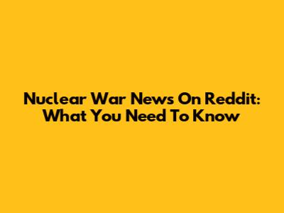 Nuclear War News On Reddit: What You Need To Know