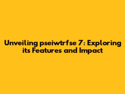 Unveiling Pseiwtrfse 7: Exploring Its Features And Impact